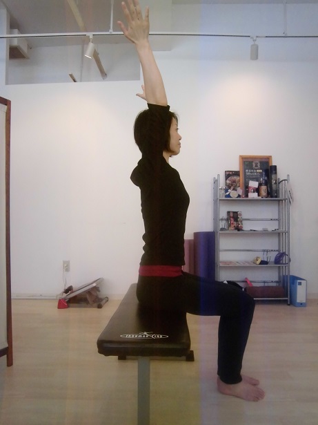 2)胸を張りながら(胸骨を引き上げる意識)バンザイします