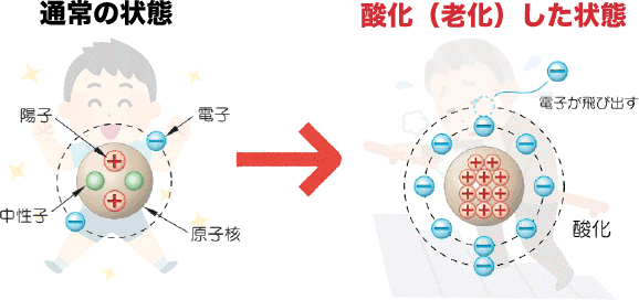 体内で、電子が減少すると、酸化が進み、老化や病気、違和感の原因となります。